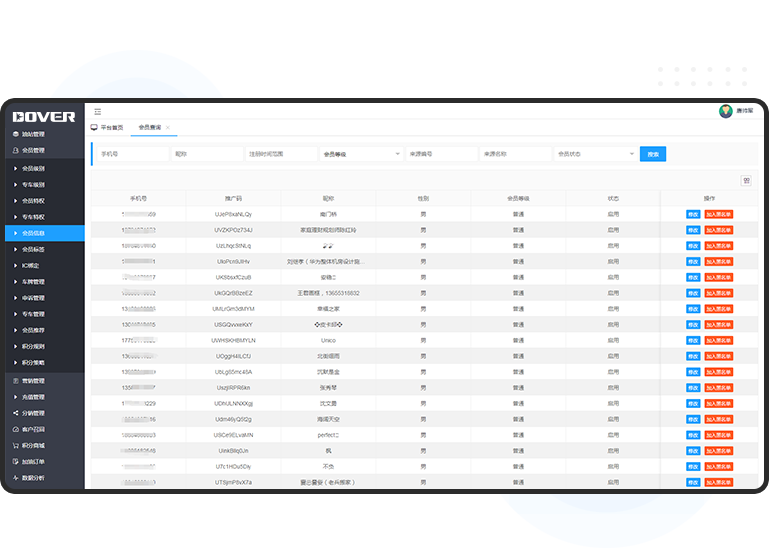 帮助油站进行会员精细化管理,根据客户消费能力进行层级划分